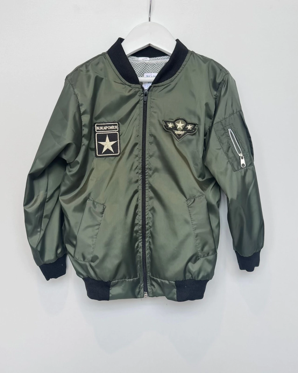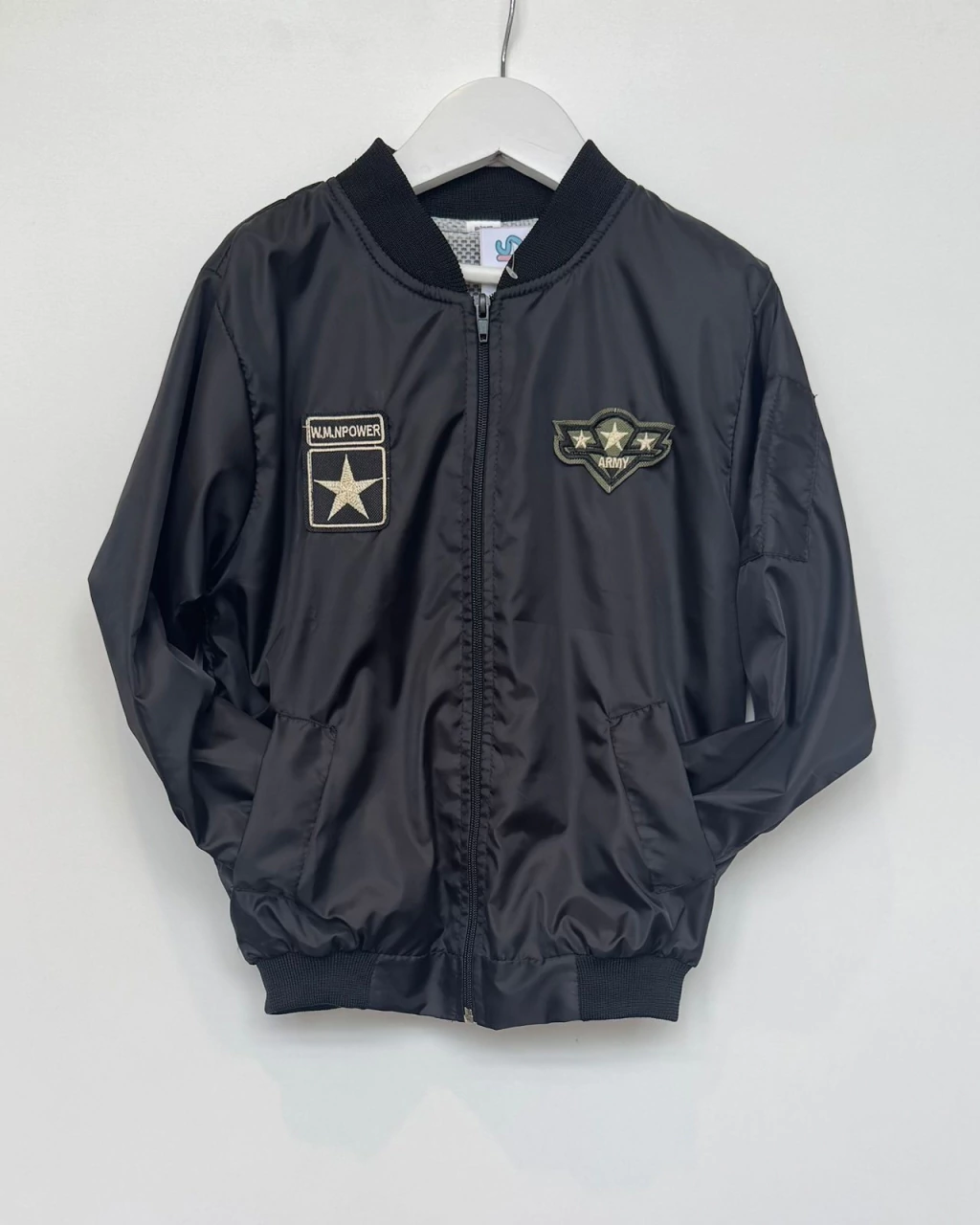 Campera bomber rompevientos con forro interno, cómoda y liviana. Diseño canchero con detalle de apliques y bolsillo en el brazo, ideal para un look urbano y versátil que acompaña todos tus días.