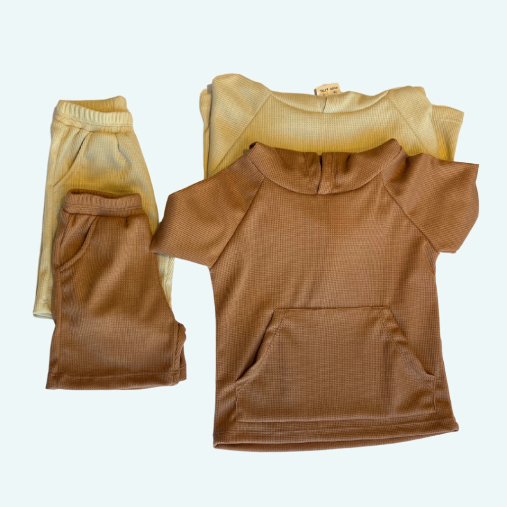 Conjunto de remera con capucha y short en tela waffle. Suave, canchero y súper cómodo, ideal para usar todo el día con estilo.